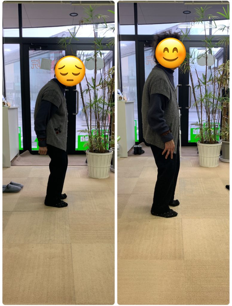普段から背中が丸くなっており、背筋が伸びない状態でした。